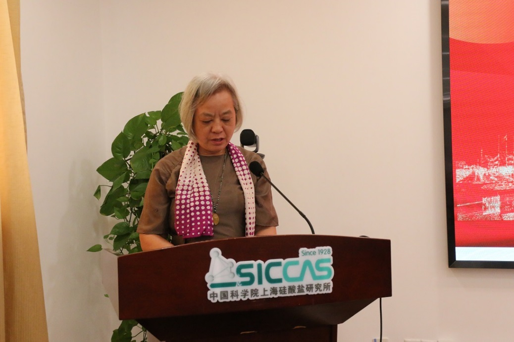 离退休总支副书记许恩得宣读了上海硅酸盐所离退休总支委员会2023-2024年度获评优秀的名单,黄慈祥、郑鑫森、张秀荣、郑慧君等四位同志获评2023-2024年度离退休总支优秀,孙伟嬿为获奖党员颁发荣誉证书。
