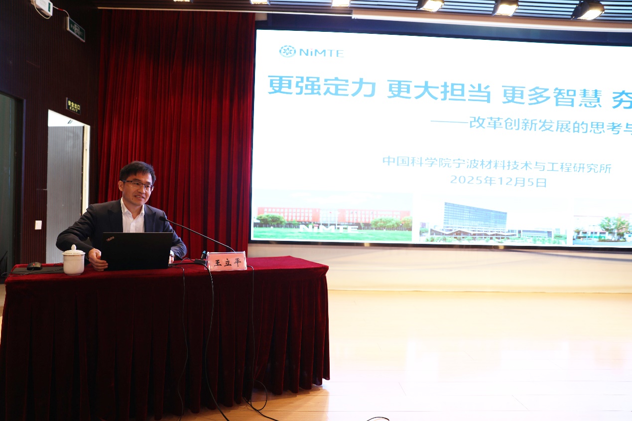 在辅导报告环节,中国科学院微小卫星创新研究院院长胡海鹰作了题为《创新引领 数智赋能 奋力抢占航天科技制高点——卫星创新院“十五五”规划》的专题报告,系统阐述了卫星创新院在“十五五”时期的科技发展方向与布局重点,报告内容丰富翔实,具有重要的借鉴意义。中国科学院宁波材料技术与工程研究所所长王立平以《更强定力 更大担当 更多智慧 夯实基础——改革创新发展的思考与初步实践》为题,结合宁波材料所改革实践,分享了在改革创新方面的深入思考与经验,为研究所发展提供了重要参考。