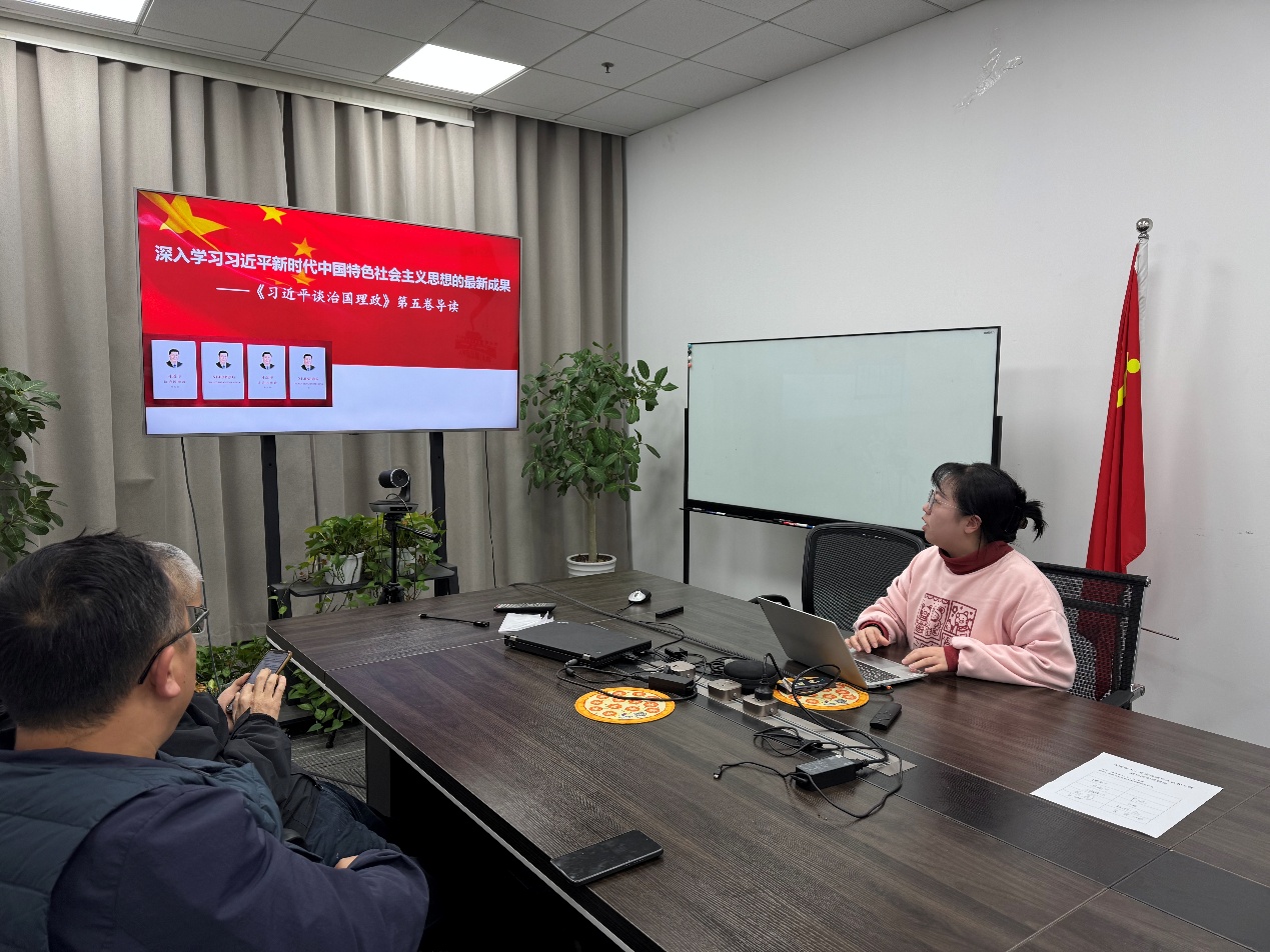 丁娆结合《习近平谈治国理政》第五卷导读内容,围绕坚持和发展中国特色社会主义、推进中国式现代化、加快实现高水平科技自立自强等重要论述,带领全体党员深入领会习近平新时代中国特色社会主义思想的核心要义和最新实践成果。