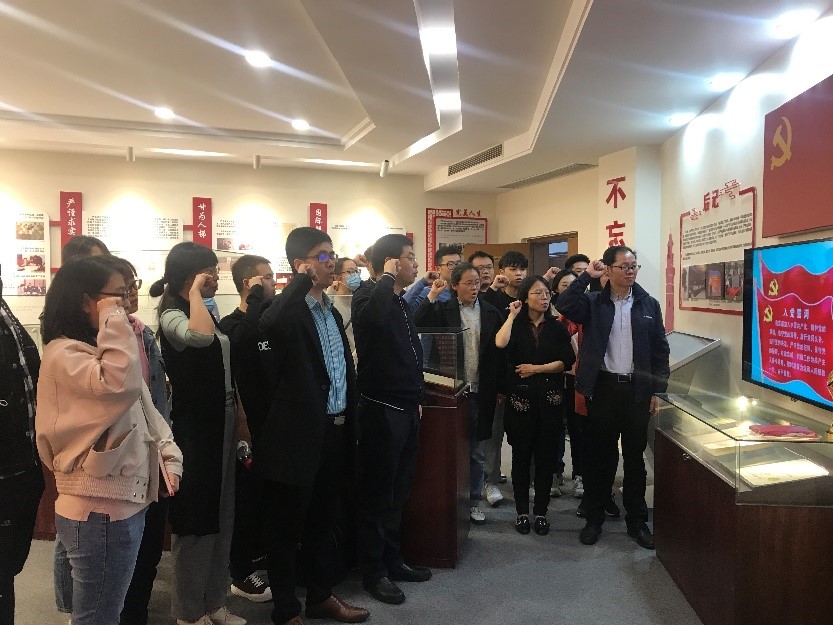 在研究所“科技报国 材料筑梦”党员教育基地,与会人员通过参观严东生先生办公室原址、生平展陈、墙上的老照片和展柜中的原手稿真切感受严先生报效祖国、致力科技改革、推进国际合作、无私提携后学等崇高形象、伟大精神和高尚品格。最后,朱钰方带领全体党员重温入党誓词。