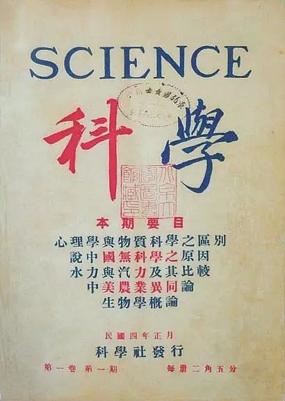 1915年8月回国后,《科学》改在国内出版,科学社也正式改组为“中国科学社” ,周仁被选为第一届董事。这是中国第一个交流和传播现代科学技术的学术团体,办社的宗旨是:“联络,研究学术,以图中国科学之发达。”《科学》是我国最早的综合性科学杂志,“以传播世界最新科学知识为帜志”,划出了科学传播的一个新时代。这些先驱者把现代科学技术带到了祖国。