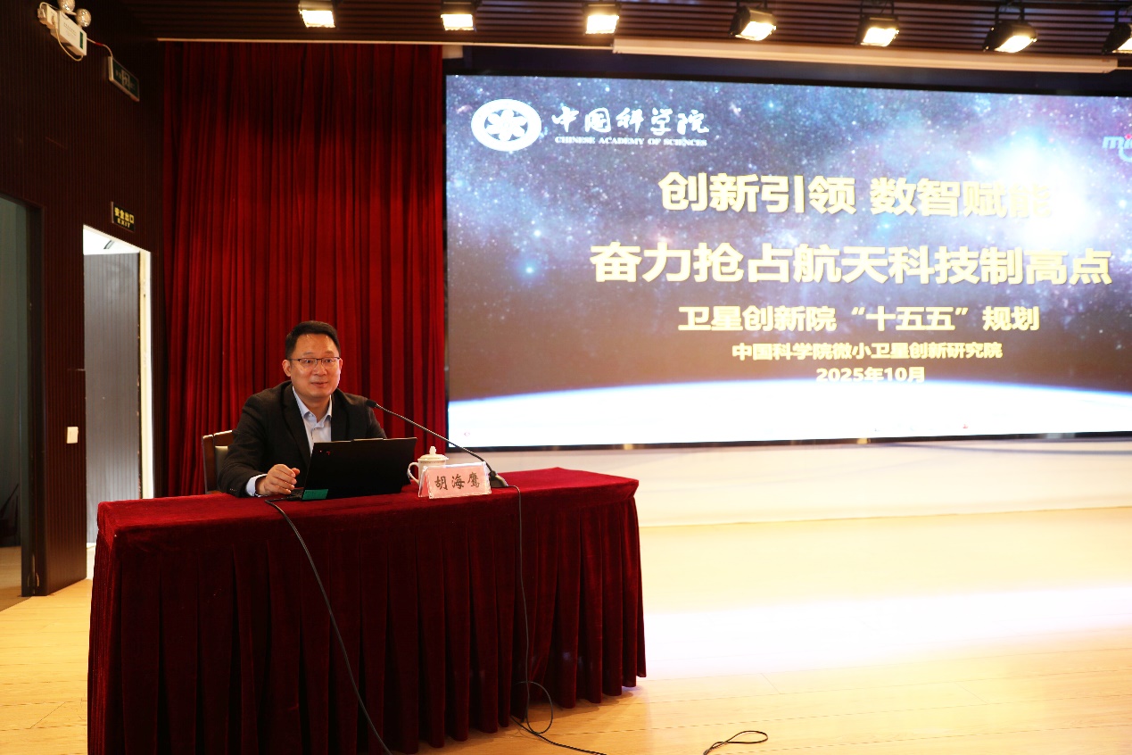 胡海鹰作题为《创新引领 数智赋能 奋力抢占航天科技制高点——卫星创新院“十五五”规划》的专题报告