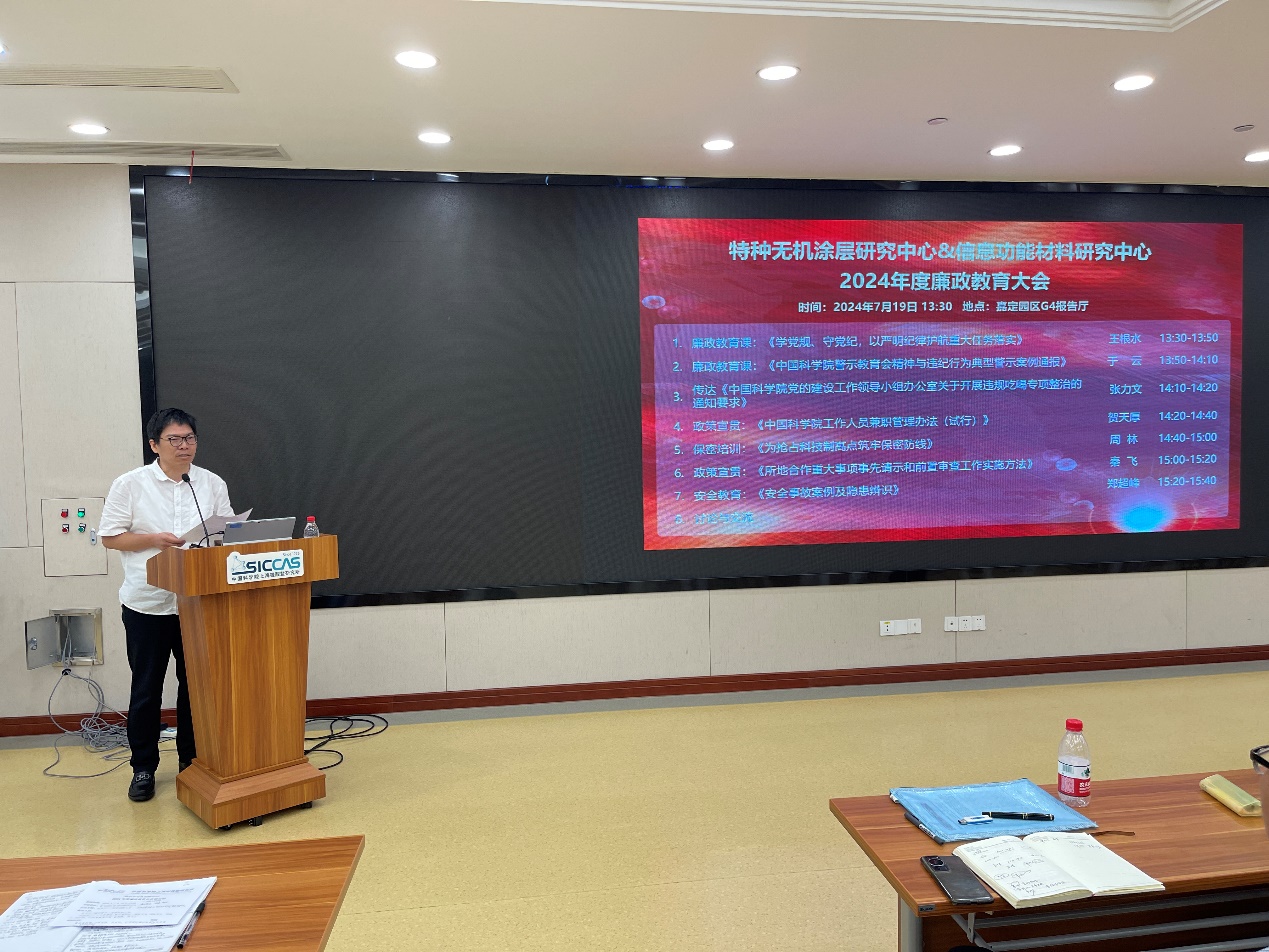 上海硅酸盐所特种无机涂层研究中心和信息功能材料研究中心联合召开2024年度廉政宣传教育会议