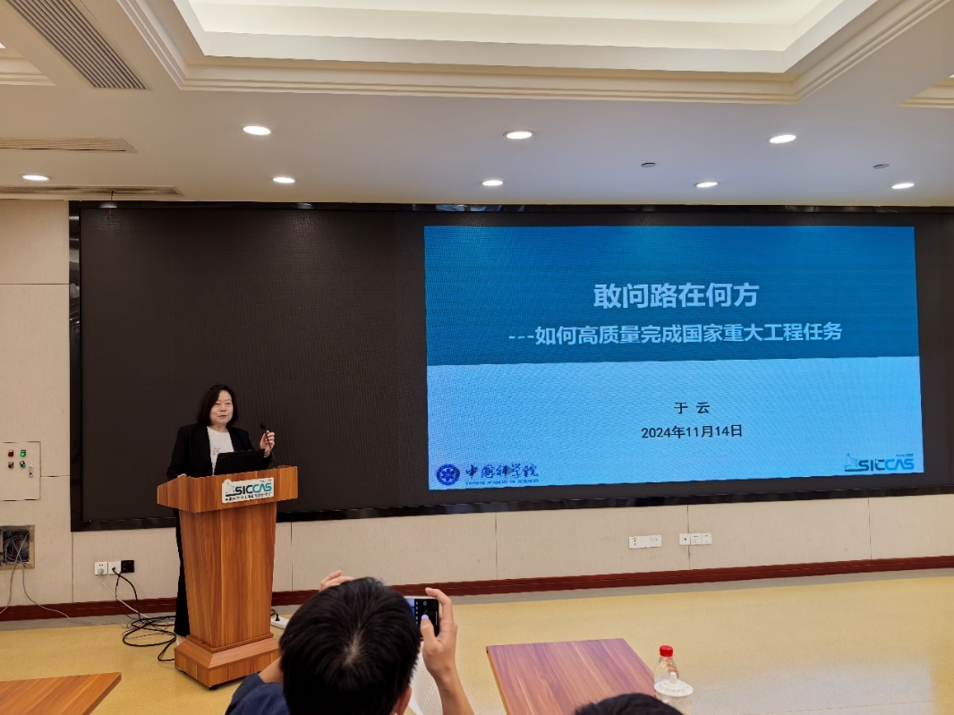 上海硅酸盐所特种涂层中心主任于云作了题为“敢问路在何方—如何高质量完成国家重大工程任务”主题党课。于云回顾中心承担的任务、应用的成果,分享承担国家重大任务的感悟以及未来的努力方向。她表示要完成国家重大任务不仅需要“求真务实,尊重科学规律,稳扎稳打”的科研精神,更需要发挥党支部的力量,团结协作,路就在脚下。