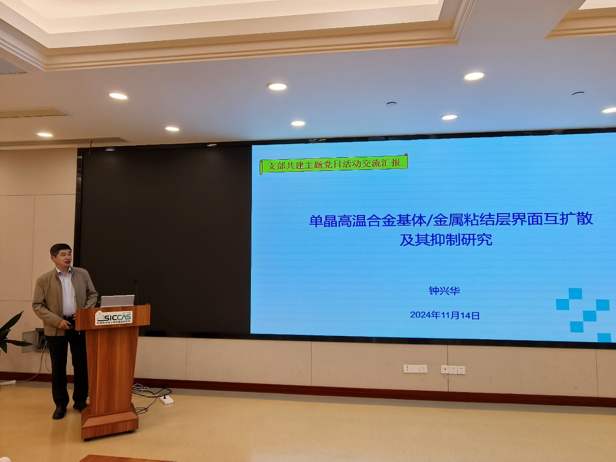 上海硅酸盐所特种涂层中心党支部钟兴华作了题为“单晶高温合金基体/金属粘结层界面互扩散及其抑制研究”的学术报告。结合目前国际上的研究现状,介绍了背景、意义、研究思路以及在该研究方向中取得的各项研究成果。最后,作为入党积极分子,钟兴华还结合近期的理论学习,分享了科研的心得和感悟。