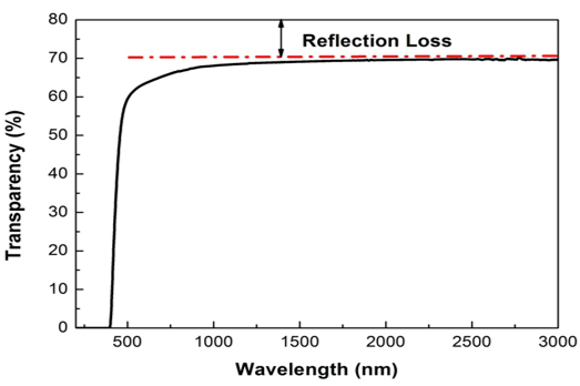 透明PMNT铁电陶瓷的直线透过率曲线