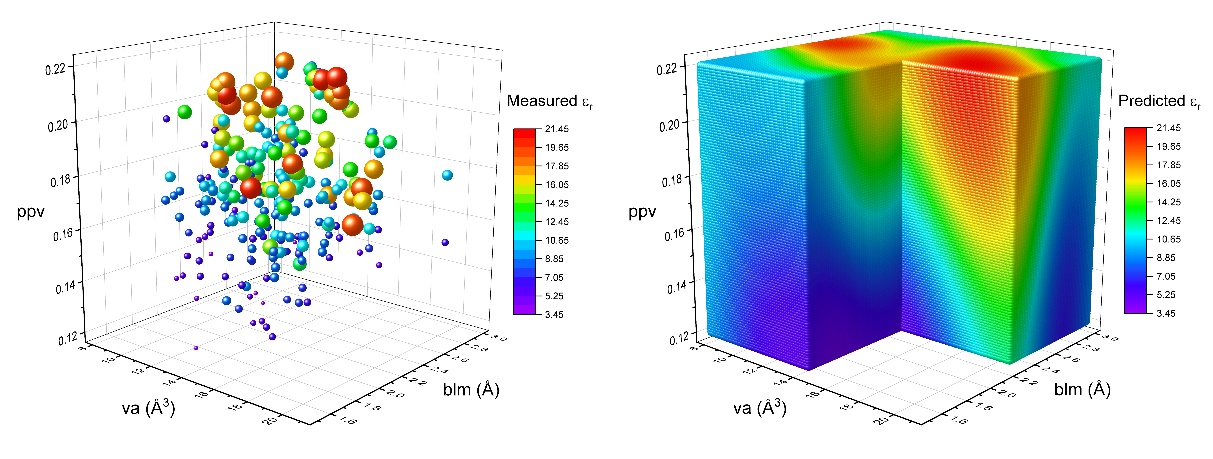 材料信息学(Materials Informatics)是应用信息学方法解决材料科学与工程问题的交叉学科。借助机器学习等数据驱动方法,分析材料数据之间的统计相关性,挖掘出“成分-结构-工艺-性能”关系,进而实现材料结构设计、成分调控、工艺优化和性能预测等目标。本研究方向的主要研究内容有:介质材料性能预测、元器件可靠性评价和寿命预测;先进介质材料的高通量制备、性能评价等。本团队在国际上较早地开展机器学习和实验相结合的微波介质材料研究,揭示了化学成分和晶体结构对介电常数、品质因数和烧结温度的影响机制,建立了性能定量预测模型辅助新材料设计。此外,本团队在电子元器件的可靠性评价、寿命预测、故障诊断等方向也逐步开展了研究工作。