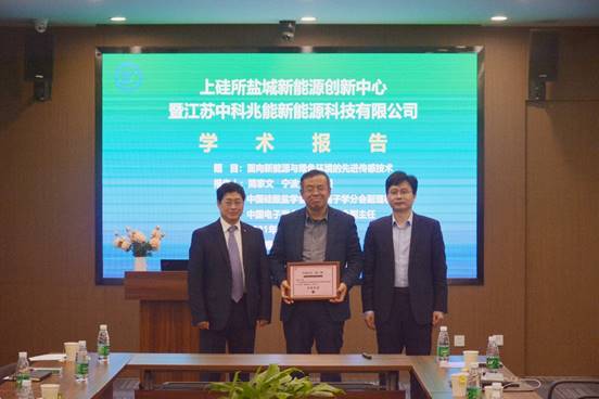 仪式后,与会人员参观了江苏中科兆能公司的展厅和实验室。简家文教授应邀为上海硅酸盐所盐城新能源创新中心暨“兆能论坛”作了题为“面向新能源与绿色环境的先进传感技术”的首场学术报告。