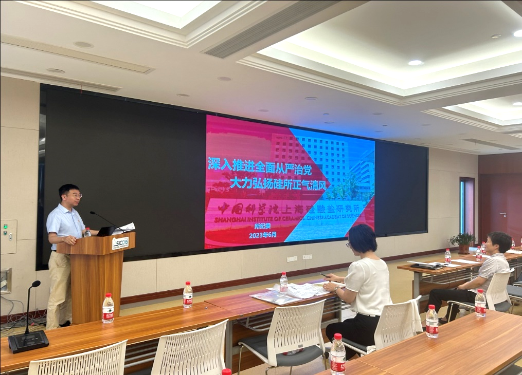 6月25日下午,中国科学院上海硅酸盐研究所无机材料分析测试中心支部、能源中心支部联合开展组织生活,持续深入推进学习贯彻习近平新时代中国特色社会主义思想主题教育。上海硅酸盐所党委委员、所务委员、科技发展部部长闫继娜,党委委员卓尚军,纪委委员、工会主席孙伟嬿,纪委委员、测试中心主任曾毅,纪检监督审计室主任马晓利,测试中心党支部书记、中心副主任钱荣,测试中心党支部和能源中心党支部党员、群众60余人参加会议。会议由钱荣主持。