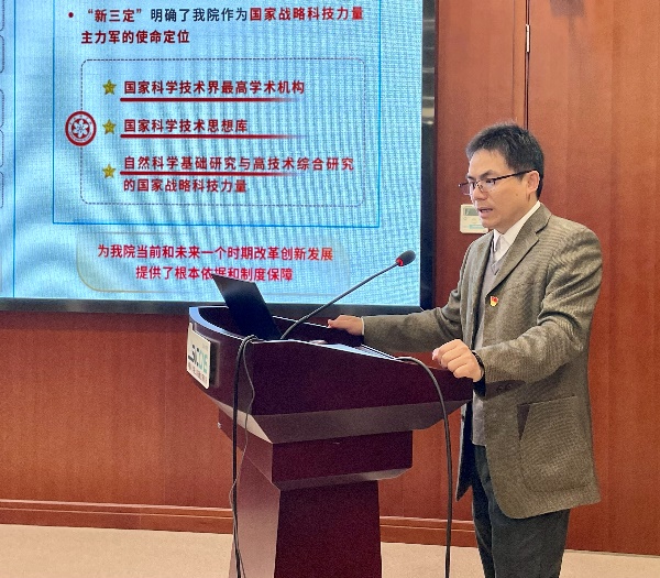 周田华传达了中国科学院2026年度工作会议精神。他系统领学了"十四五"期间全院改革发展成效,聚焦主责主业奋力攻坚克难,全院改革创新发展各项工作迈上新台阶、取得新突破,为"十五五"时期我院决胜全面实现"四个率先"奠定了坚实基础。