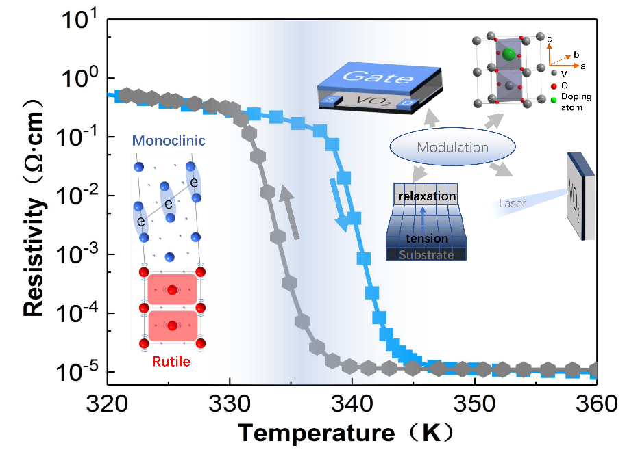 相变调制、VO₂机制与新型器件集成:构建基于VO₂ 相变结构的新型多场调控模式。利用电致变色、光致变色材料(如HxWO₃ 、YHx)实现对VO₂ 薄膜中缺陷(离子或电荷)捕获与释放的调控。探究强关联电子体系中相变与调制行为的机理。