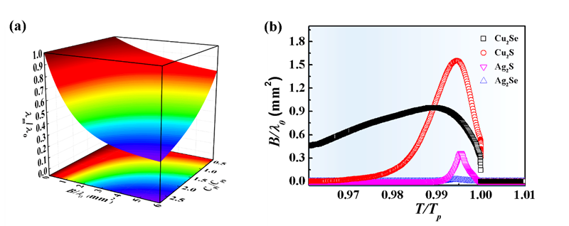 (a)Cu2Se, Cu2S, Ag2S和Ag2Se的真实热导率,(b)基于真实热导率计算得到的Cu-2Se相变过程中的热电优值zT。