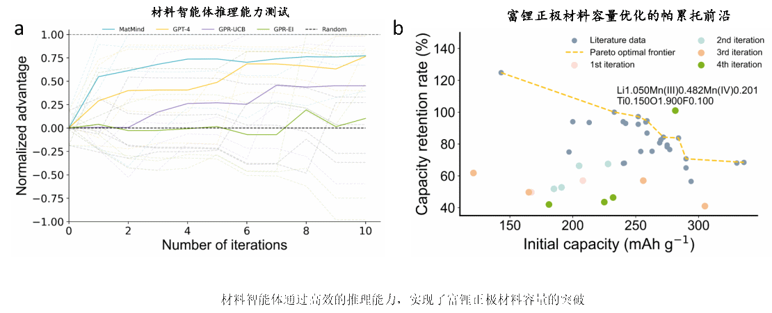 图6材料智能体通过高效的推理能力,实现了富锂正极材料容量的突破