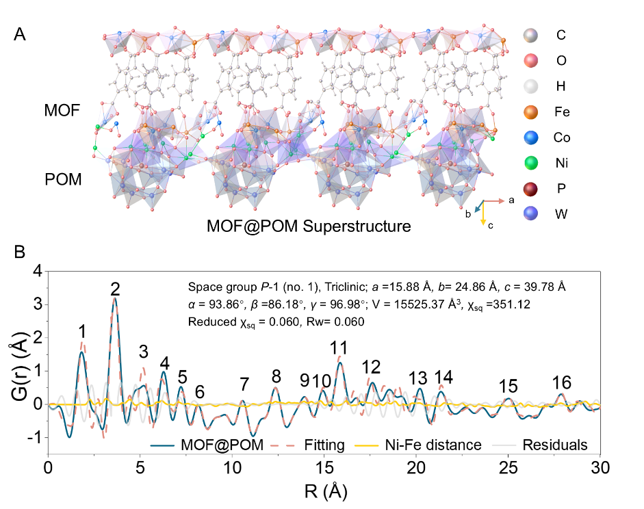 MOF@POM超结构(A)及结构解析(B)。