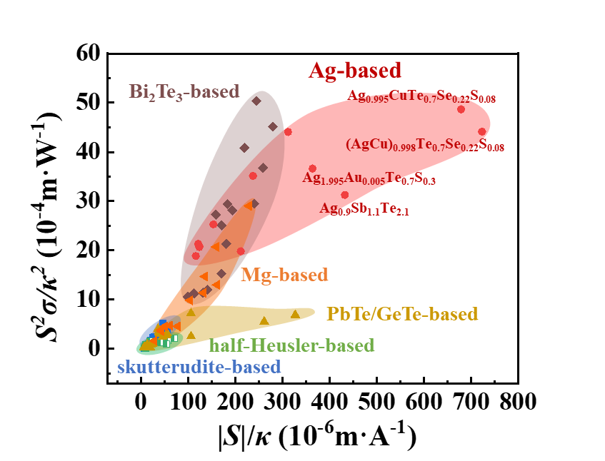 图1. 代表性热电材料的|S|/κ和S2σ/κ2。