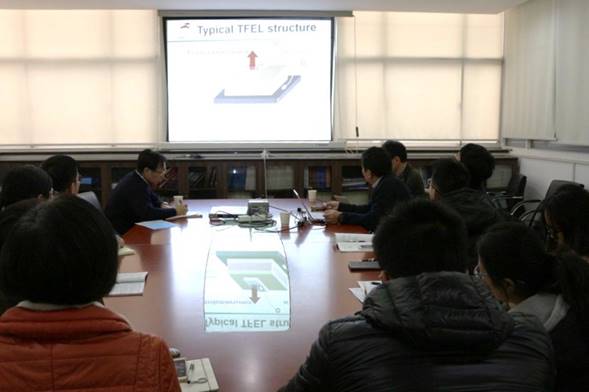 Takashima Hiroshi 高级研究员作了题为“Thin-film perovskite electroluminescence”的报告,报告主要介绍了其研究团队采用多层BaTiO3 / ((Ca0.6Sr0.4)0.997Pr0.002)TiO3/ BaTiO3,制备的钙钛矿结构的电致发光薄膜材料,该材料可在低电场条件下实现驱动。实验结果表明,随着驱动电压的升高,电致发光的强度会快速提升,并且95%以上的电压可以有效地应用于荧光粉层。