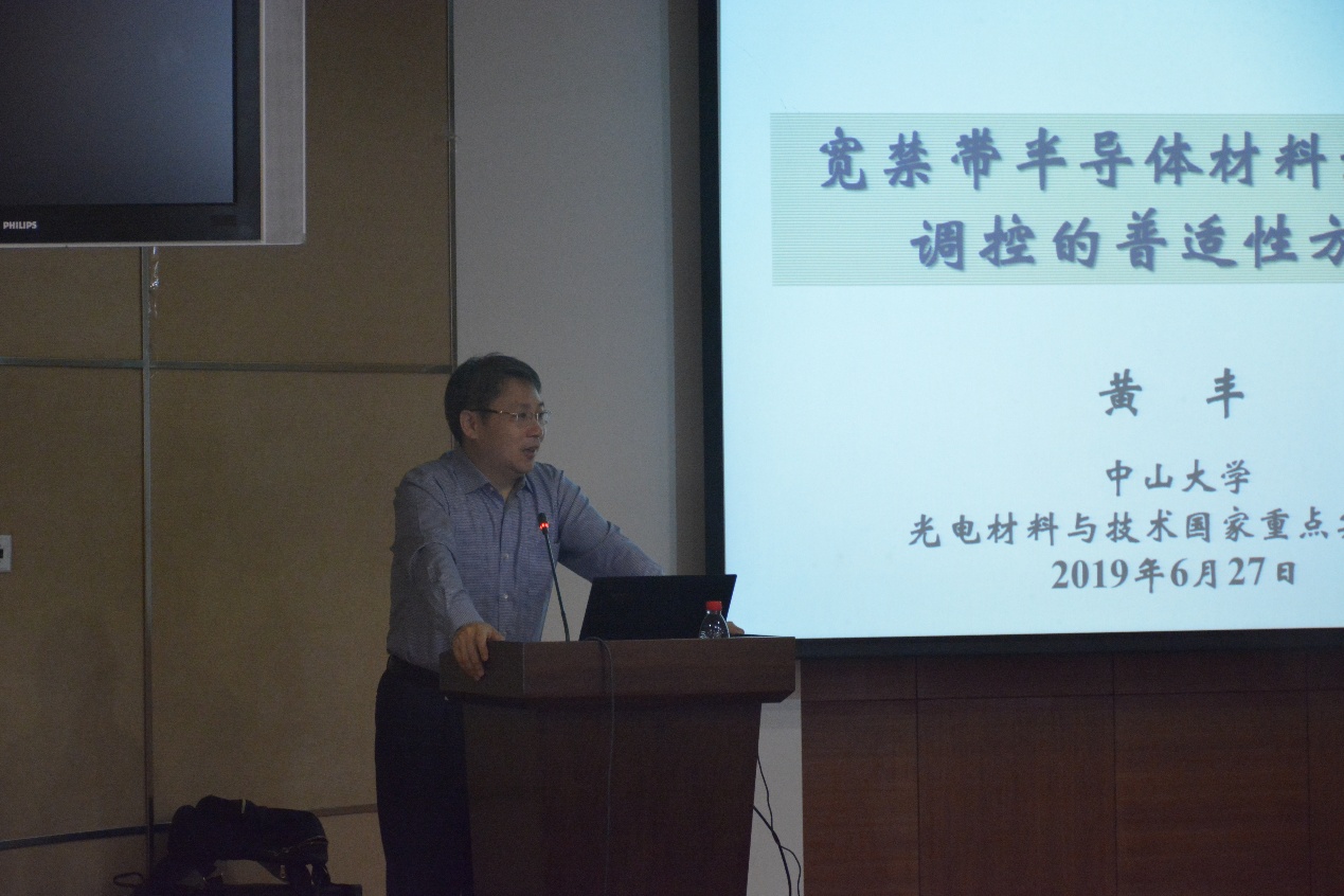 黄丰教授作了题为“探索宽禁带半导体材料载流子调控的普适性方法”的报告。报告围绕如何实现“大带隙材料中的载流子自由调控——变绝缘体为半导体”进行了详细阐述。报告以实现ZnO半导体的p型调控研究为出发点,提出了利用绝对化学式作为材料学语言表述半导体p、n、i型本质问题的准则。其团队从如何确定材料形成的热力学条件、研制能实现材料稳定制备的设备、实现材料制备的稳定工艺等方面开展了一系列研究,构建了稳定p型ZnO半导体的热力学条件,从而获得能应用于LED器件制造的氧化锌衬底。研究团队将提出的宽禁带半导体材料载流子调控方法成功运用到GaO与GaN半导体材料中,证明了其方法的普适性。