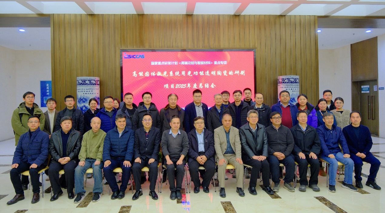 12月28日,由中国科学院上海硅酸盐研究所牵头承担的国家重点研发计划“高端功能与智能材料”重点专项“高能固体激光系统用光功能透明陶瓷的研制”2025年度总结会在上海硅酸盐所召开。责任专家中国科学院金属研究所研究员张劲松、北京化工大学教授田明、山东大学教授张伟彬,同行专家清华大学教授李勃、中国工程物理研究院上海激光等离子体研究所研究员隋展、同济大学教授徐军、上海应用技术大学教授房永征、东华大学教授王连军、中山大学教授王静、复旦大学教授方晓生、华南理工大学教授夏志国、东华大学教授陈烨、上海交通大学副教授胡志刚,财务专家中国科学院上海微系统与信息技术研究所总会计师段周生应邀参会,上海硅酸盐所基础科研处代表及项目组骨干成员40余人参加会议。会议由张劲松主持。