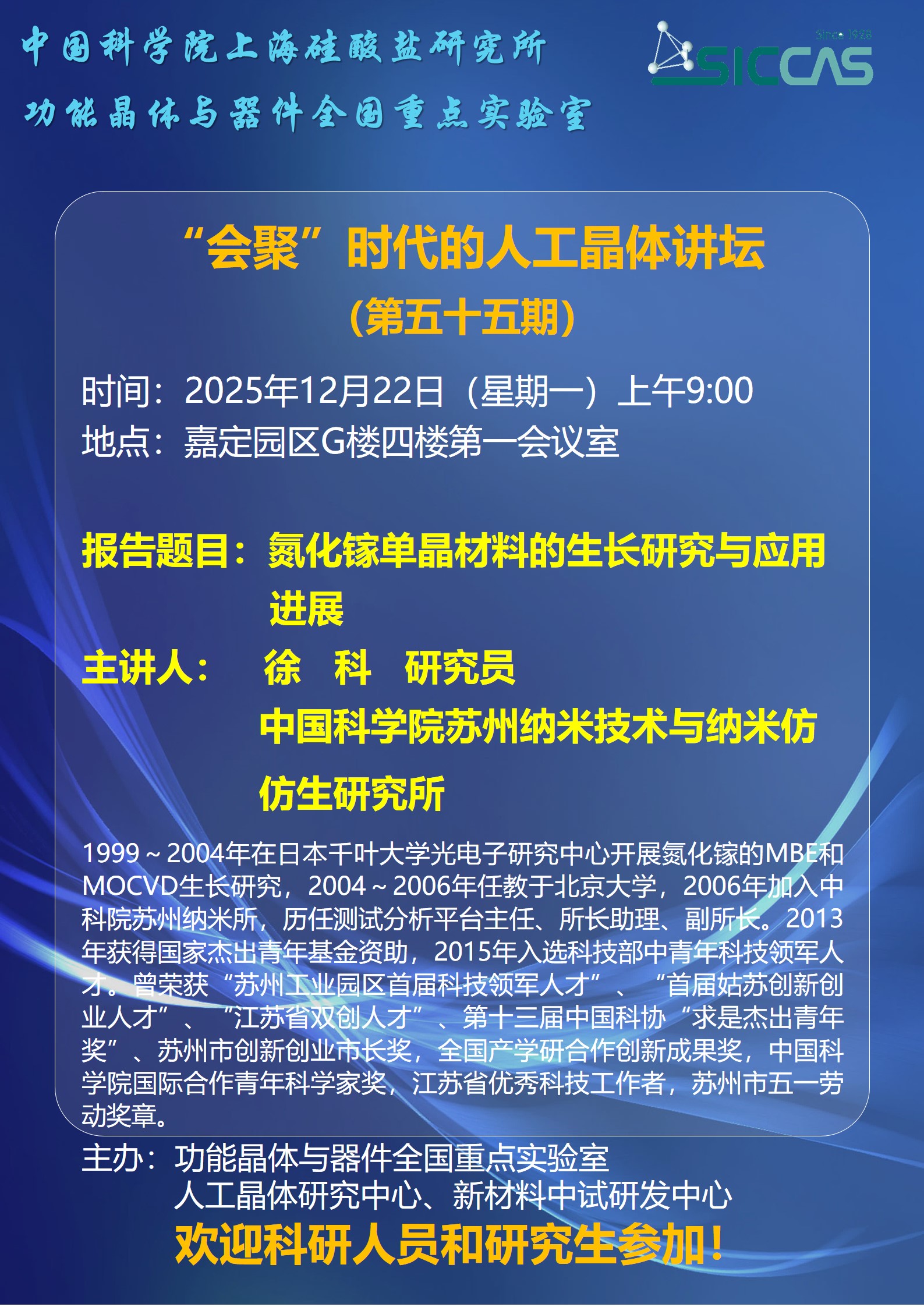 “会聚”时代的人工晶体讲坛(第五十五期)