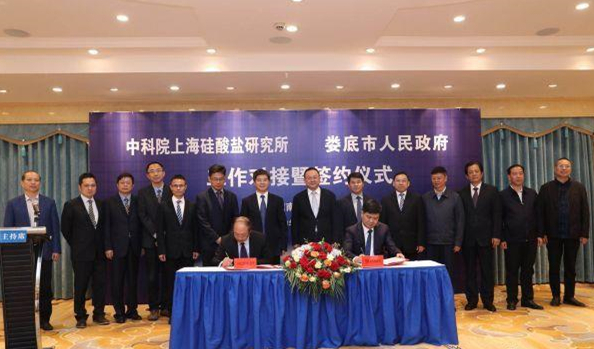 5月13日上午,中国科学院上海硅酸盐研究所与湖南省娄底市就电子陶瓷产业发展签署战略合作框架协议。上海硅酸盐所所长宋力昕代表研究所签约并讲话。娄底市委书记、市人大常委会主任李荐国主持签约仪式,市委副书记、市长杨懿文致辞,市委常委、市委秘书长方建荣出席,副市长何锋代表娄底市人民政府签约。上海硅酸盐所科技产业处处长韩金铎,综合办公室副主任毛朝梁,透明陶瓷研究中心副主任李江研究员,无机材料分析测试中心蒋丹宇研究员,功能陶瓷材料与器件物理研究课题组副组长郑嘹赢研究员参加签约仪式。