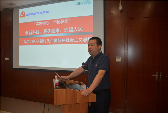 8月13日上午,按照“不忘初心、牢记使命”主题教育工作安排,中国科学院上海硅酸盐研究所举行主题教育专题党课。上海硅酸盐所所长宋力昕,副所长王东、吴成铁分别结合调研主题作了专题党课,中国科学院“不忘初心、牢记使命”主题教育第十一指导组组长汤伯伟、中科院上海分院组织干部处处长助理过宣帆应邀参加了宋力昕和吴成铁的党课。所领导班子成员、两委委员、中层干部、课题组正副组长、党支部书记、工青妇负责人、全体管理人员以及中试基地、生物材料与组织工程研究中心、透明陶瓷研究中心党支部全体党员等共计140余人参加。专题党课由上海硅酸盐所党委副书记(主持工作)、副所长董显林主持。