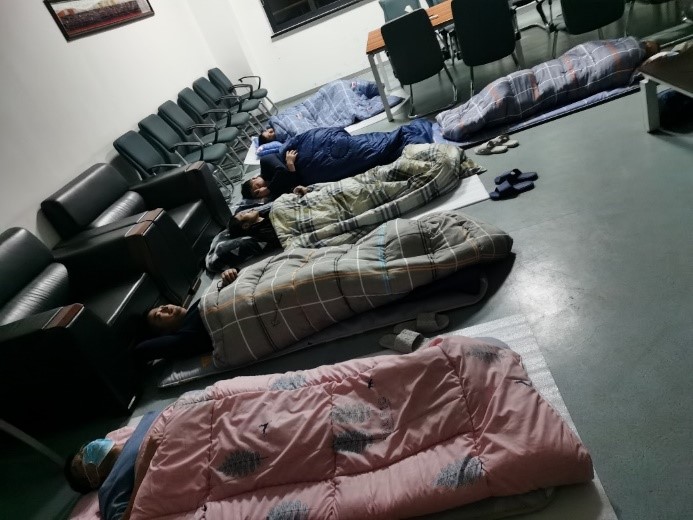 综合办公室、科技发展部等与区域相关部门紧密沟通,积极协调,为正处于关键攻坚阶段的科研人员申请办理“特别通行证”,保证科研人员及时到岗,将疫情对项目进度的影响降至最低。安全与保障管理办公室、工会也给课题组送来了棉被、睡袋等,全力保障科研人员生活必需。科技各处、资产管理处、财务处、人力资源处、研究生部、信息情报中心等也为科研工作的开展做好相应的管理服务工作。