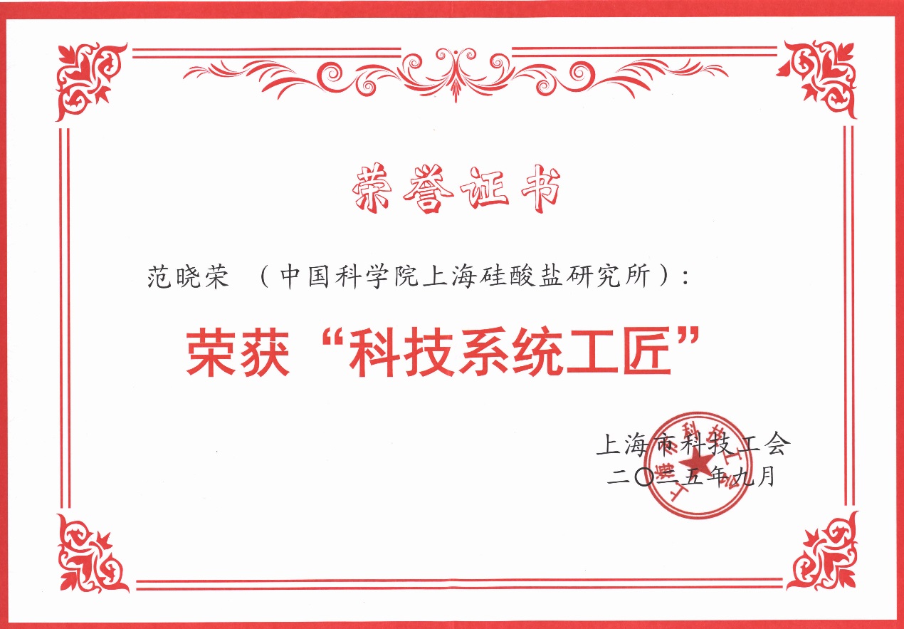 上海硅酸盐所“吴云涛职工创新工作室”获2025年度“上海市科技系统职工创新工作室”称号、范晓荣获2025年度“科技系统工匠”称号