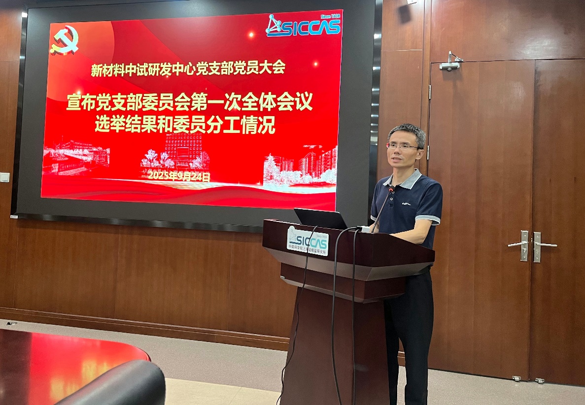 9月24日下午,中国科学院上海硅酸盐研究所新材料中试研发中心党支部开展深入学习贯彻中国科学院党组2025年夏季扩大会议精神与支委换届党员大会。上海硅酸盐所党委委员、人工晶体研究中心主任刘学超,党委委员、党委办公室主任、所办公室主任毛朝梁,新材料中试研发中心党支部书记袁兰英,党支部副书记、中心副主任朱勇,中心副主任贾颖楠,党委办公室同志以及支部全体党员参加会议,会议由朱勇主持。