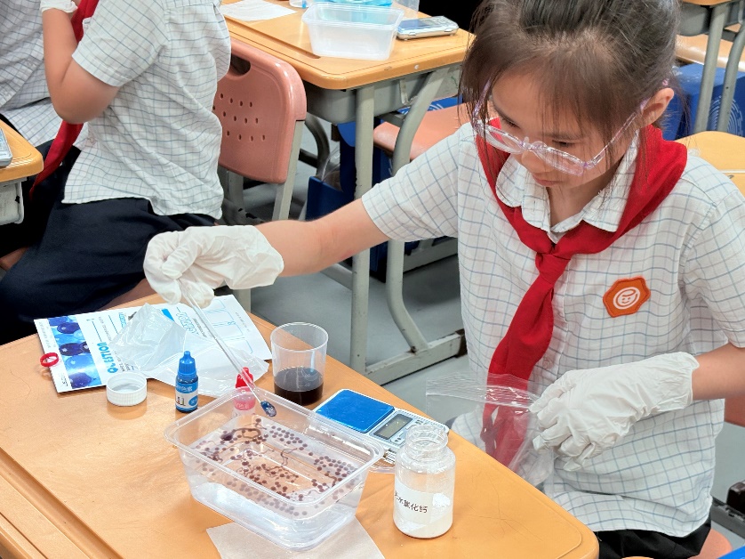 科普志愿者发挥科研优势,在嘉定区实验小学的科普活动现场,设计了“海藻酸钠微球制备及性能研究”科研微课题体验,将相关实验用具、耗材、教案、实验手册等汇到“科学盒子”中,以桌面微型实验室的形式,让学生体验材料科学探究的魅力,体会科学家思考的过程。孟园参与了授课活动。前期她还应邀为学生讲了科普报告“绿色能源 未来社区”,介绍了相关能源材料进展和未来应用展望。