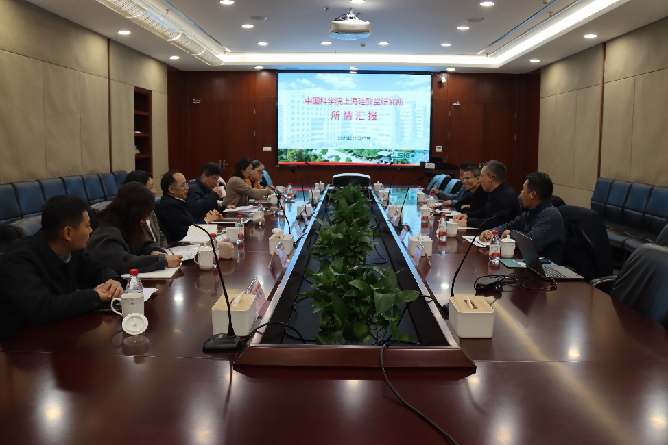 苏良碧代表上海硅酸盐所向市政协人资环建委一行走访调研表示热烈欢迎,并介绍了上海硅酸盐所科研成果、任务承担、技术突破、应用领域、人才队伍等方面的基本情况。