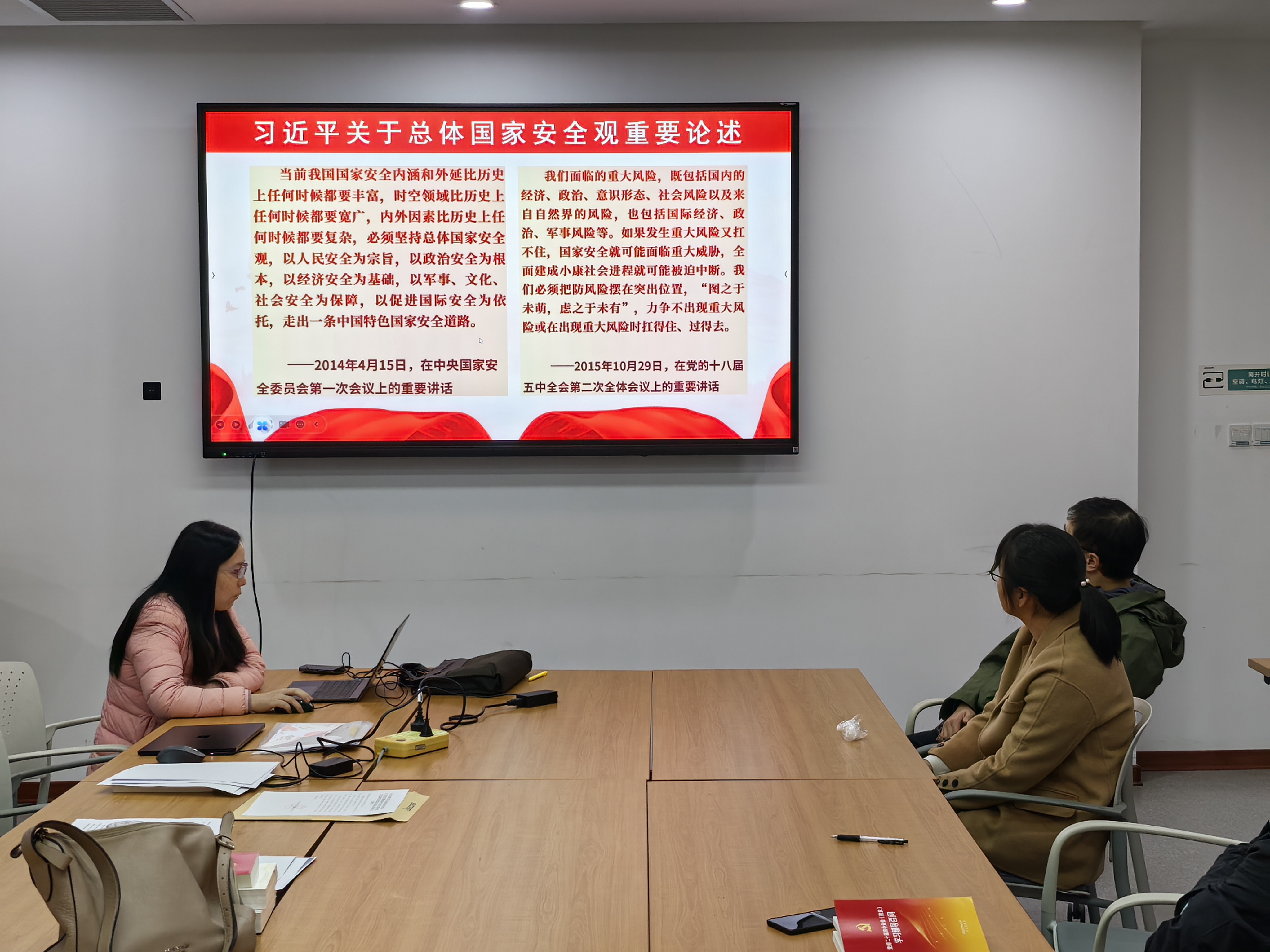 王冉冉带领党员专题学习习近平关于总体国家安全观重要论述。会议明确要求,全体党员必须牢固树立并认真践行总体国家安全观,始终保持忧患意识,坚持居安思危;要深刻把握科技安全在国家安全体系中的重要地位,自觉将维护国家安全融入科研工作各环节、全过程;要在日常工作与生活中持续提升安全防范意识和能力,以实际行动筑牢国家安全的人民防线,为国家发展和民族复兴保驾护航。