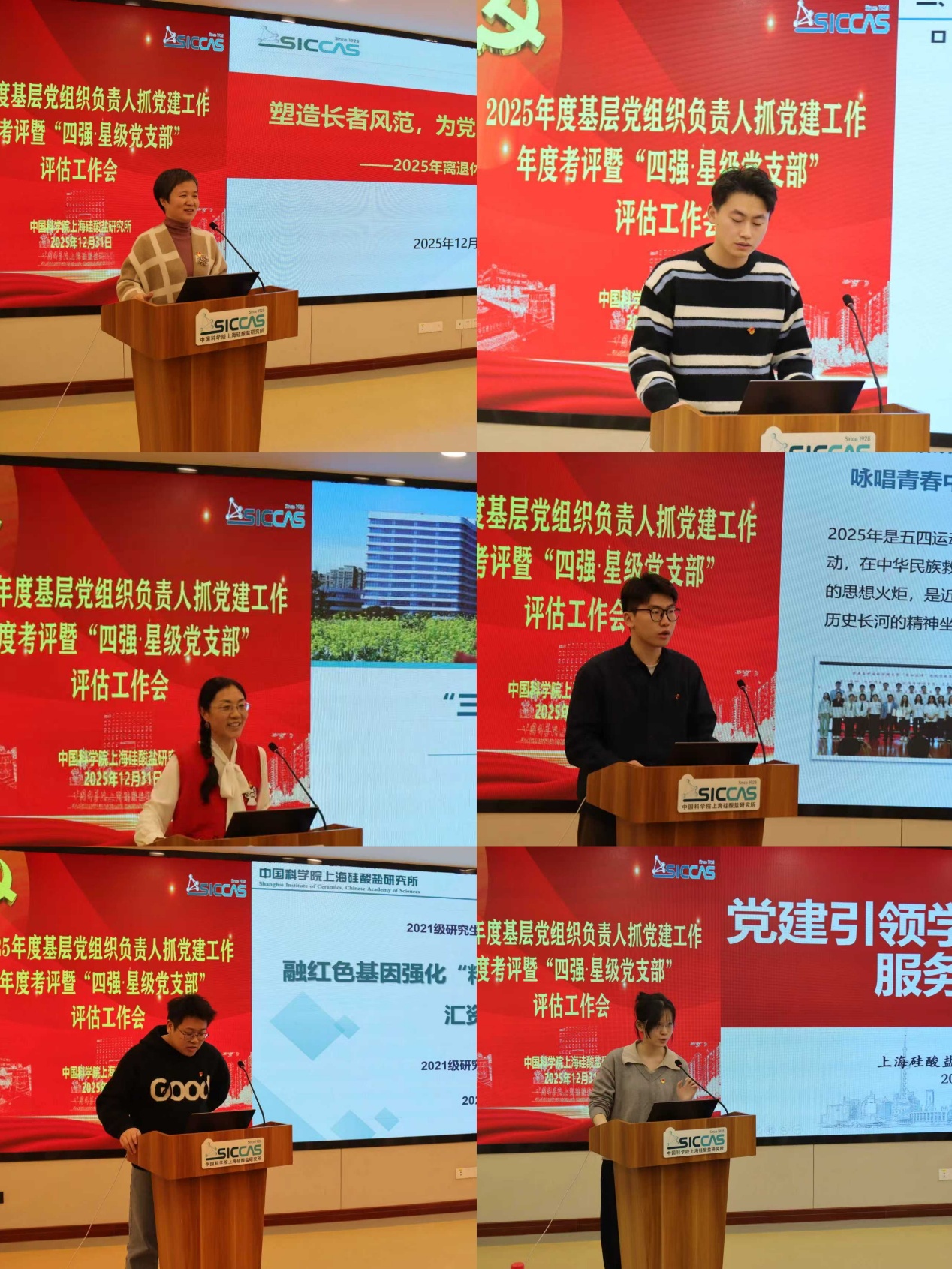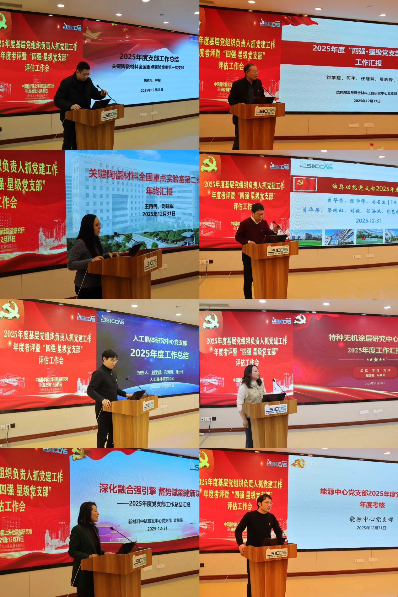 2025年12月31日下午,中国科学院上海硅酸盐研究所召开2025年度基层党组织负责人抓党建工作年度考评暨“四强·星级党支部”评估工作会议。上海硅酸盐所党委委员、纪委委员、相关业务与职能部门负责人代表、各党支部(总支)正副书记、工青妇组织负责人等50余人参加了会议。会议由党委书记王东主持。