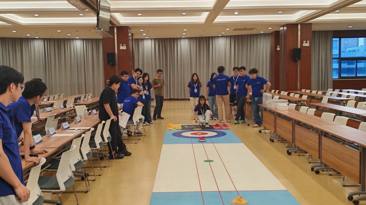 晚上,营员们在嘉定园区展开了一场别开生面的旱地冰壶对抗赛。比赛不仅考验策略与精准度,更强调团队协作,同学们表示“投壶时就像调控材料烧结温度,力度和角度都要恰到好处!”最终,比赛决出了一等奖一队,二等奖三队,三等奖四队。