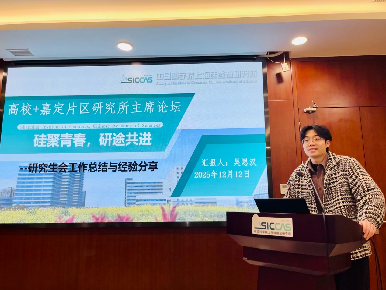 12月12日,以“凝聚科创力量,共话青年未来”为主题的“高校+嘉定片区研究所研究生会主席论坛”在中国科学院上海硅酸盐研究所顺利举行。此次论坛由上海硅酸盐所研究生会与研究生融媒体中心联合主办,旨在加强上海区域高校与嘉定片区各研究所研究生组织之间的横向联系,搭建高端、务实、开放的交流平台。上海硅酸盐所研究生部副主任陆彩飞出席论坛并致辞。论坛由研究生部闫静怡主持。