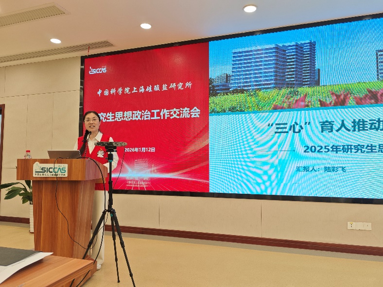 上海硅酸盐所研究生部副主任、研究生党总支书记陆彩飞作报告