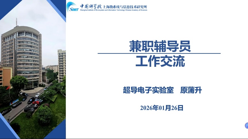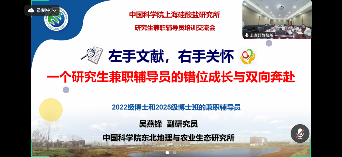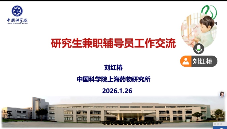为加强研究生兼职辅导员队伍建设,提升育人能力与工作水平,1月26日下午,中国科学院上海硅酸盐研究所举办研究生兼职辅导员培训交流会。中国科学院东北地理与农业生态研究所研究生兼职辅导员吴燕锋、中国科学院上海药物研究所研究生兼职辅导员刘红椿、中国科学院上海微系统与信息技术研究所研究生兼职辅导员原蒲升应邀线上参加并作专题分享,上海硅酸盐所全体研究生兼职辅导员参会,会议由研究生部副主任、研究生党总支书记陆彩飞主持。