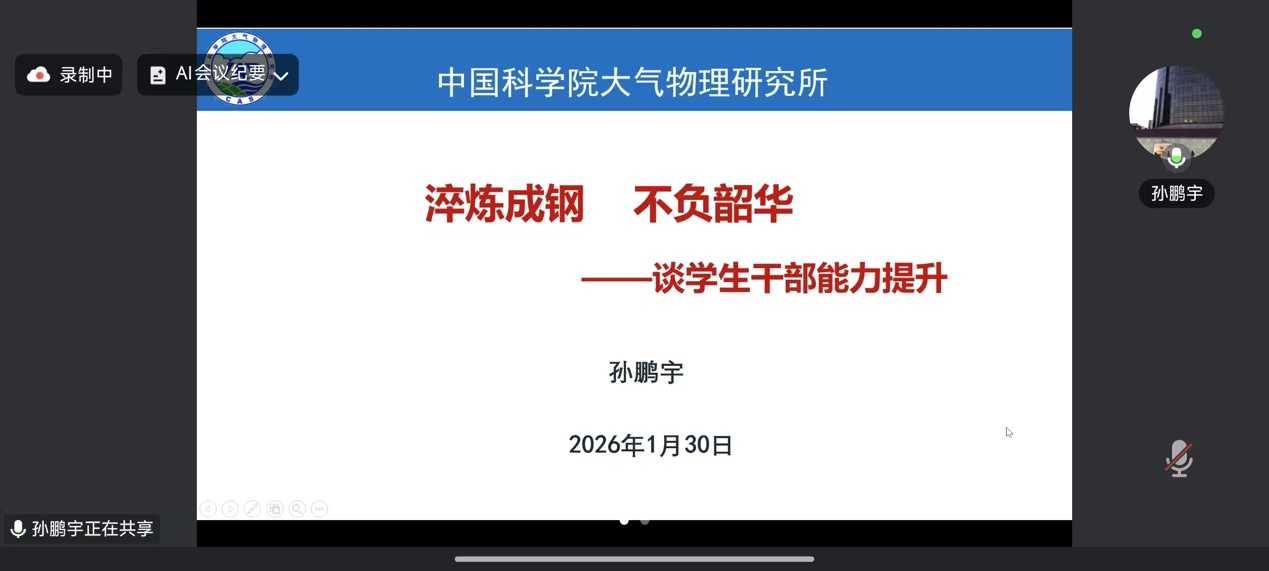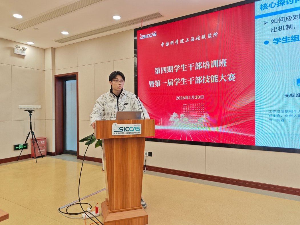 为切实加强研究生骨干队伍建设,全面提升学生干部的履职能力与综合素质,2026年1月30日,中国科学院上海硅酸盐研究所举办第四期学生干部培训班暨第一届学生干部技能大赛。会议邀请中国科学院大气物理研究所研究生部主任孙鹏宇线上出席并作报告,上海硅酸盐所研究生部副主任陆彩飞出席会议并作专题报告。研究生党支部、团支部、研究生会、融媒体中心及各班级骨干共计五十余人参会。本次会议由融媒体中心副主任王佳琪主持。