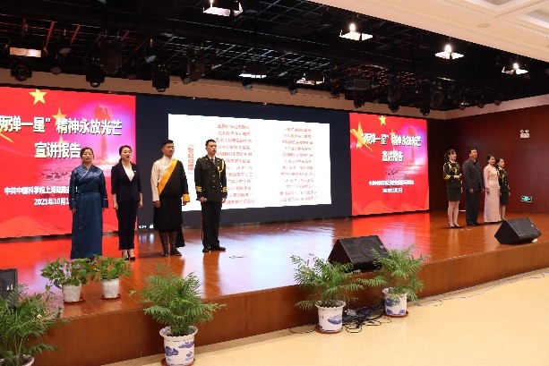 宣讲报告以情景再现的方式,通过视频、照片和现场讲述的方式,回顾了“两弹一星”研制过程中发生的感人历史瞬间,梳理了中国第一个核武器研制基地的重要历史。宣讲报告会整场约有90分钟,共分为“人间正道是沧桑、愿得此生长报国、许生国威壮山河、苟利国家生死以、直挂云帆济沧海”五个篇章,主要讲述“两弹元勋”、科研人员、海北藏族自治州金银滩牧民等群体为中国的“两弹一星”伟业所做出的重要贡献,特别是“做隐姓埋名人,干惊天动地事”的感人故事。报告会内容生动、精彩,期间许多党员流下了感动的泪水,一致认为宣讲报告是一次深刻的思想政治教育、爱国主义教育和党员党性教育,以更近的距离和视角走进那段惊心动魄、艰苦卓绝的光辉岁月,学习和了解郭永怀、邓稼先等老一辈科学家及众多无名英雄的崇高理想信念和高尚价值追求,感悟和触摸共和国记忆里的红色基因和伟大精神。