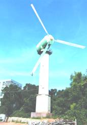 我国风能事业在上世纪70年代就已开始,初期主要发展小型风力发电机组(离网型),1976年投产17台,2002年就达到几万台,近30年共生产∼25万台,除满足国内需求外,还出口到印度、瑞典、等30多个国家,这类离网型小型风力发电机组的保有量及产量,均处于世界首位[40]。下图示小型机应用: