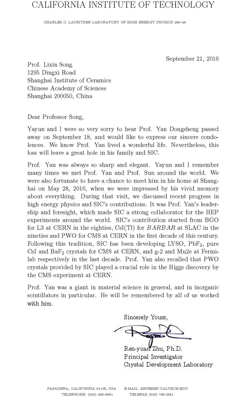 严先生是材料科学领域尤其是无机闪烁晶体的巨匠,他永远活在所有与他共事过的人们的心中。