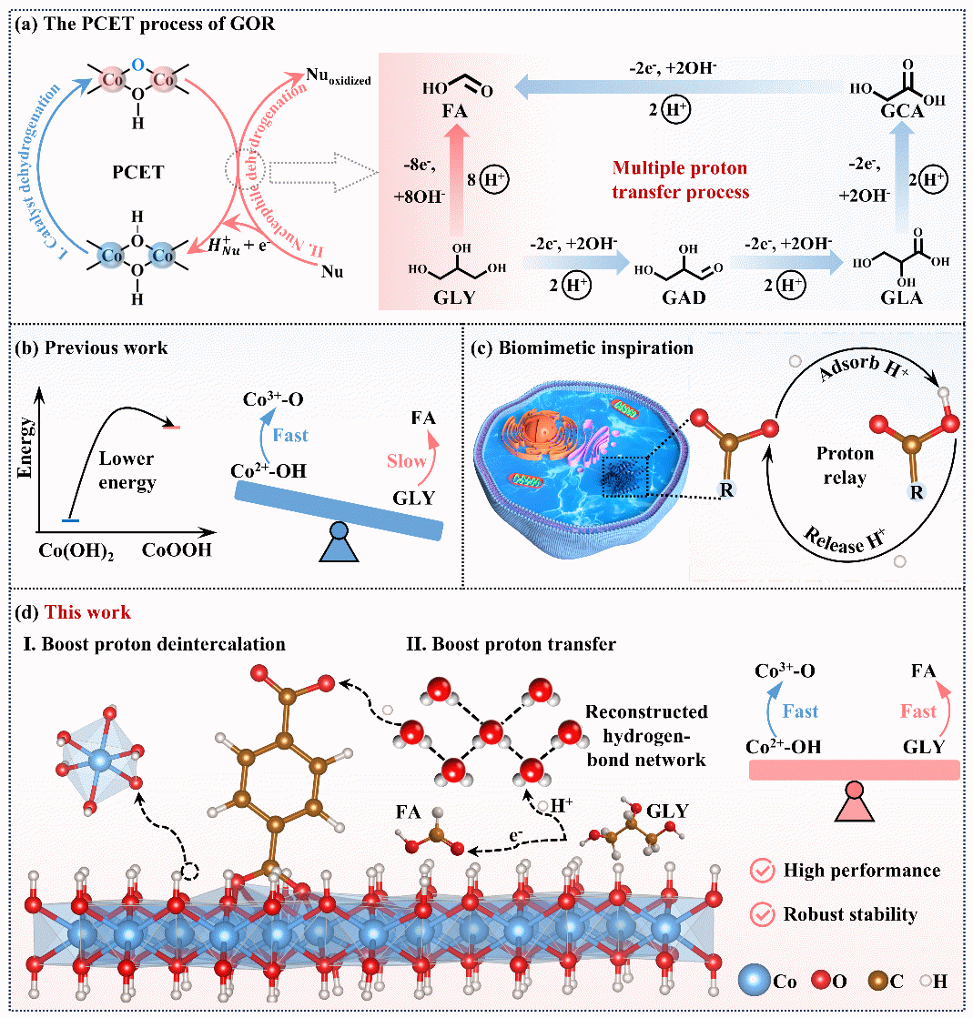仿生催化剂/电解质界面氢键网络工程促进甘油电氧化质子转移