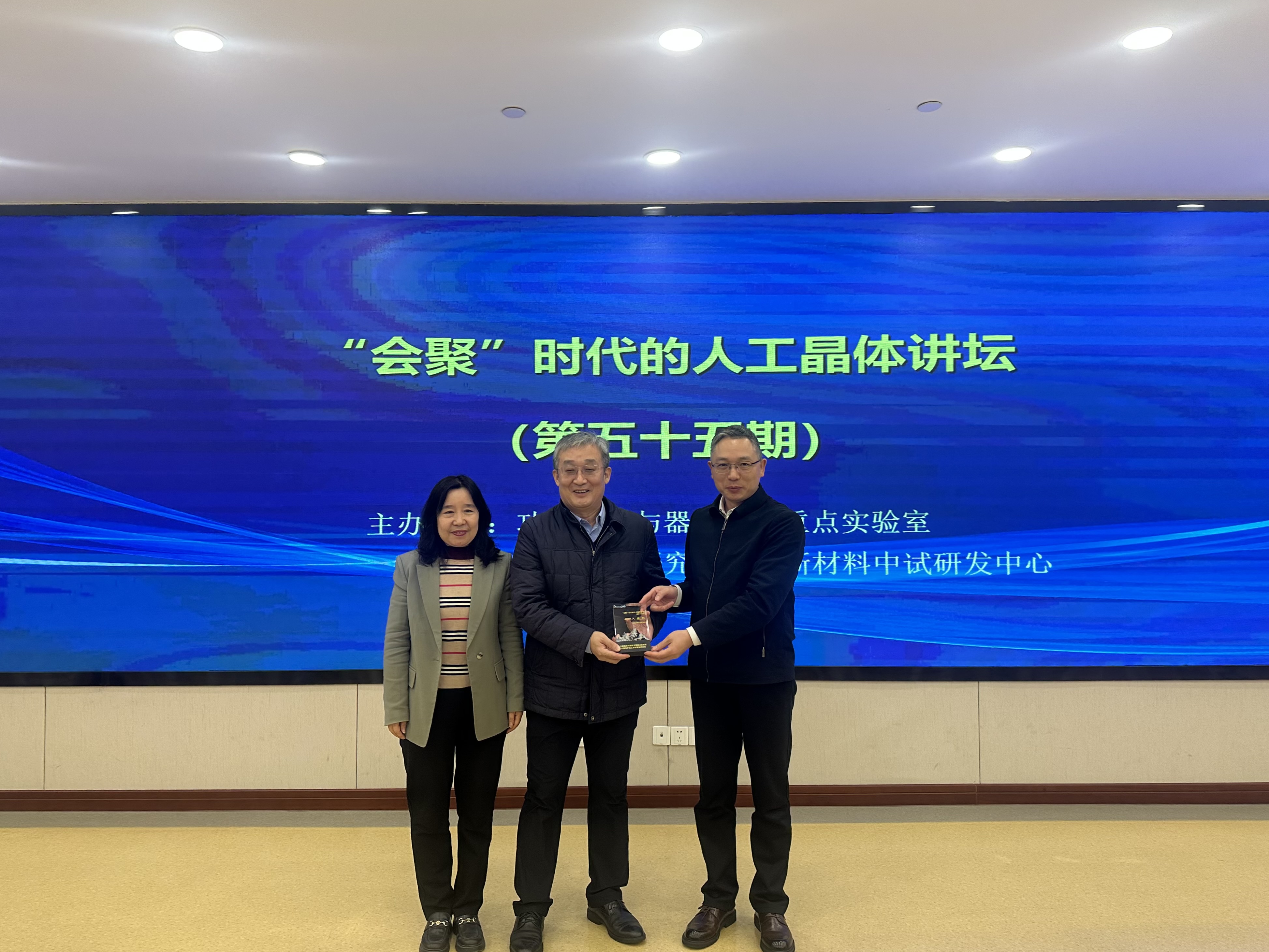 苏良碧与闫继娜向徐科研究员赠送讲坛纪念牌。