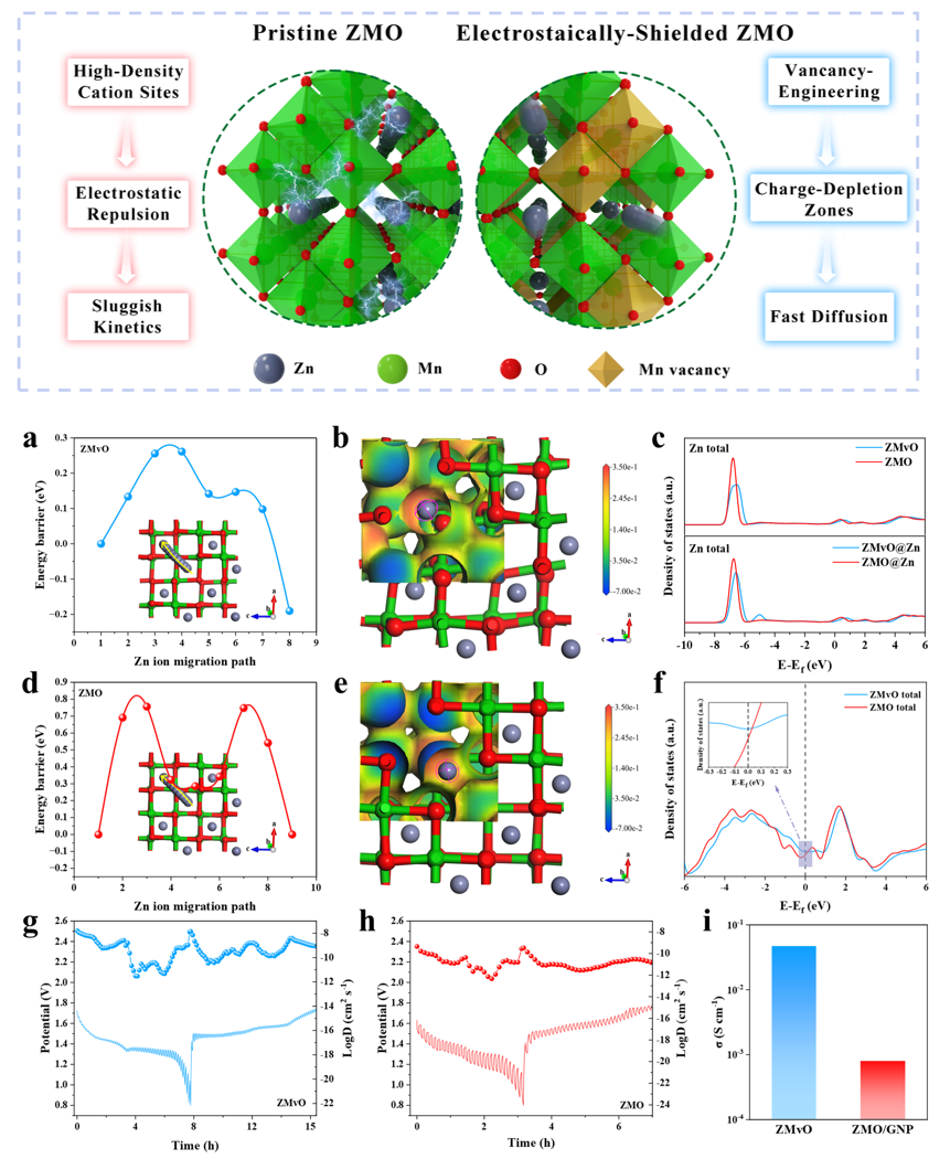 图7. 空位调控的设计原理示意与强化超离子导体ZMO离子通量的机理解析