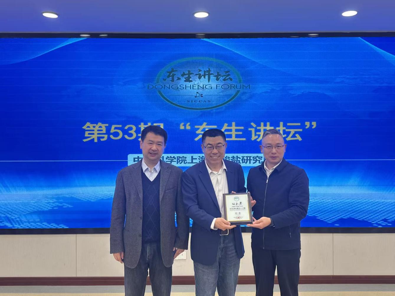 报告结束后,王东和苏良碧代表上海硅酸盐所向田永君院士赠送纪念证书,田永君院士为第五十三期“东生讲坛”讲座签名留念。