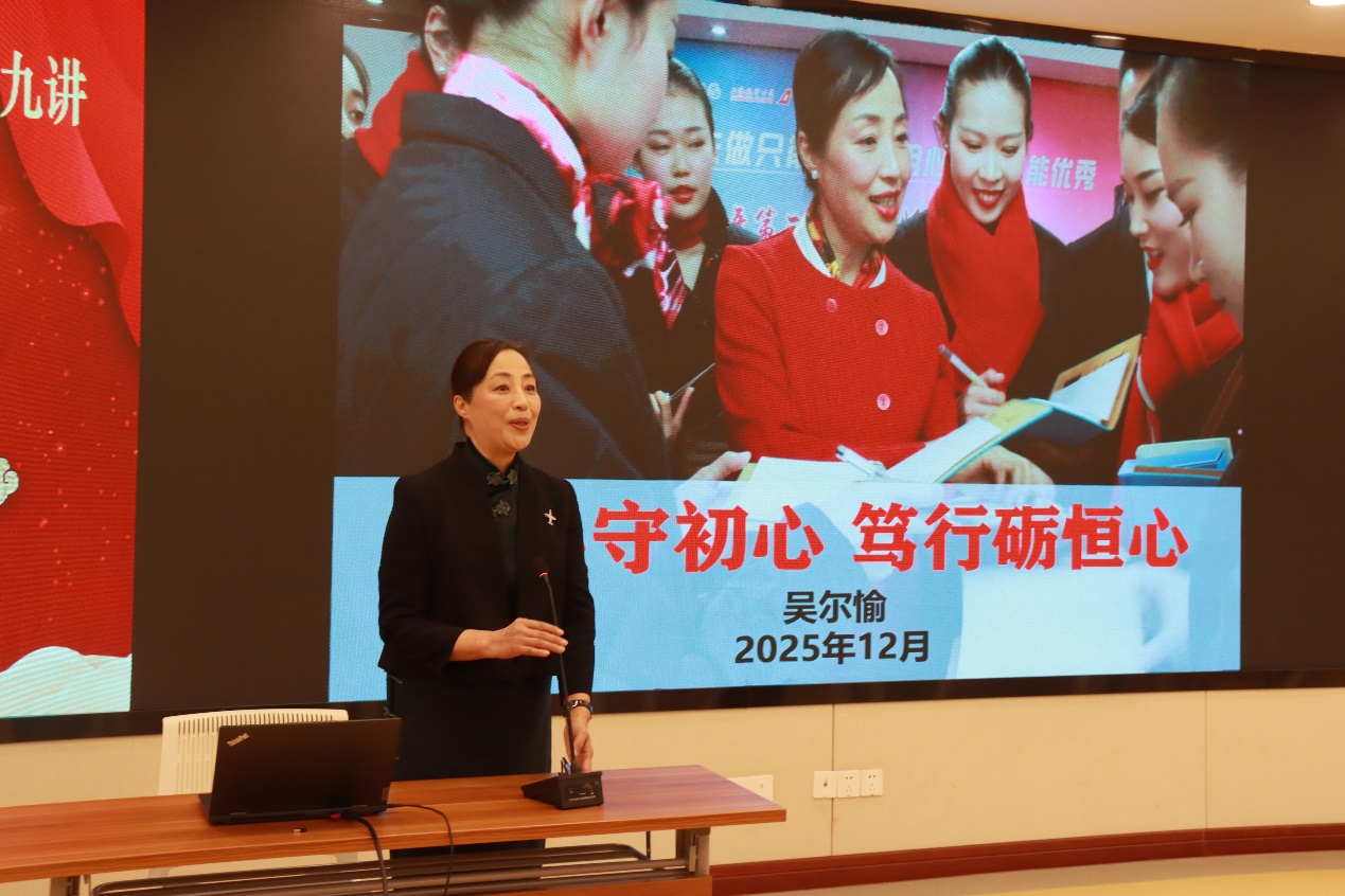 全国五一劳动奖章、全国劳动模范、全国三八红旗手获得者,上海航空股份有限公司乘务长吴尔愉作主题报告