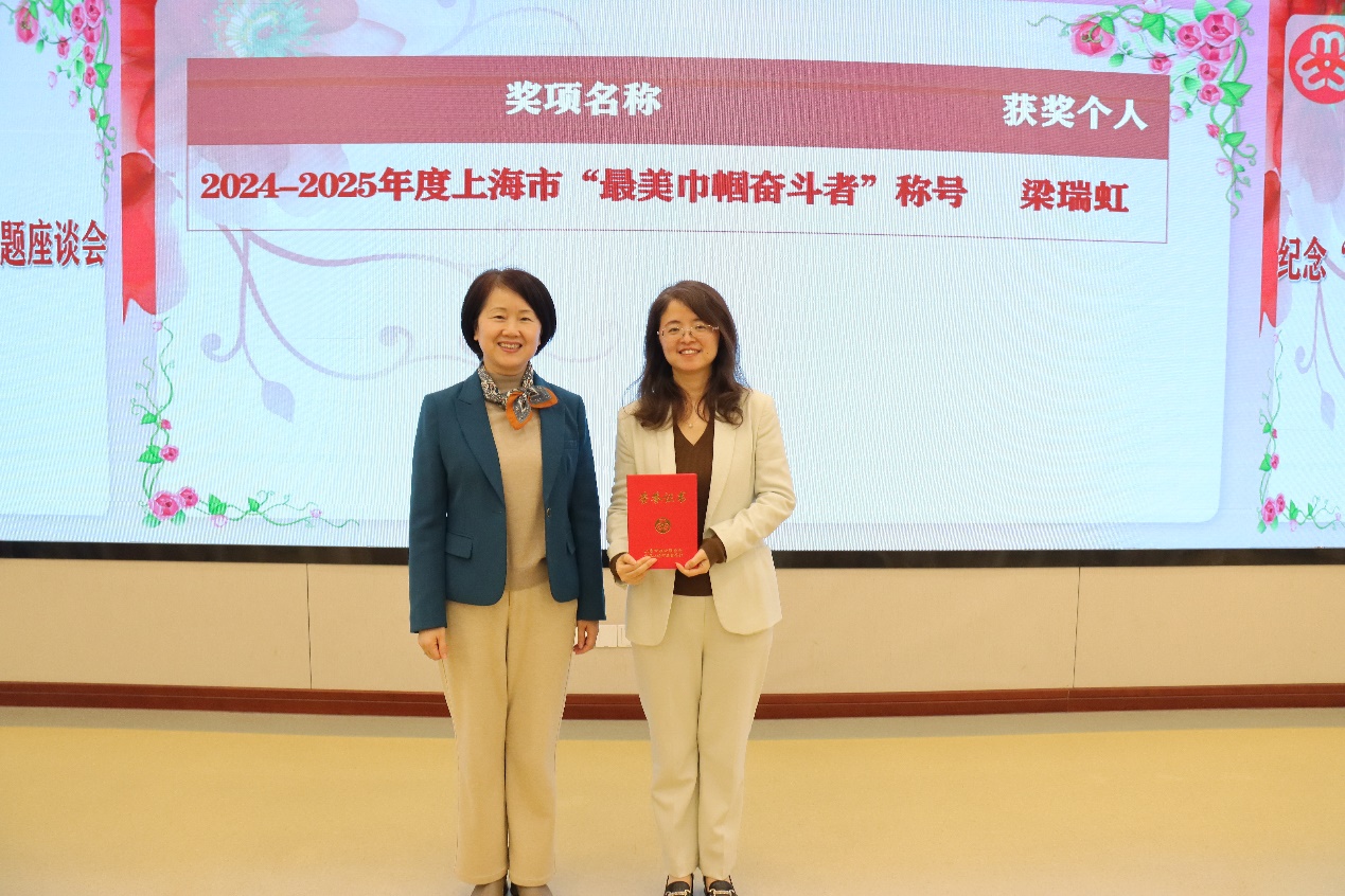 姚芳为2024-2025年度上海市“最美巾帼奋斗者”称号获得者颁奖