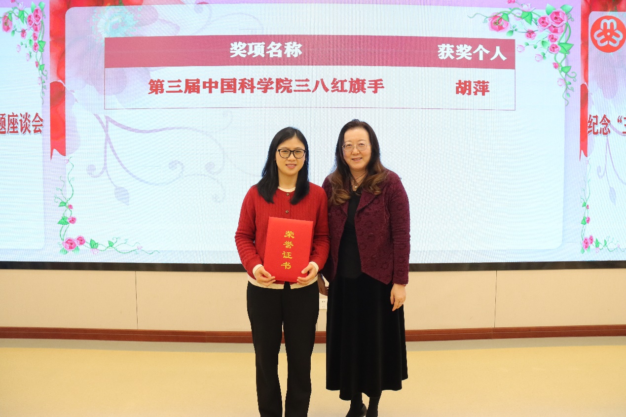 柳红为第三届中国科学院“三八红旗手”获得者颁奖