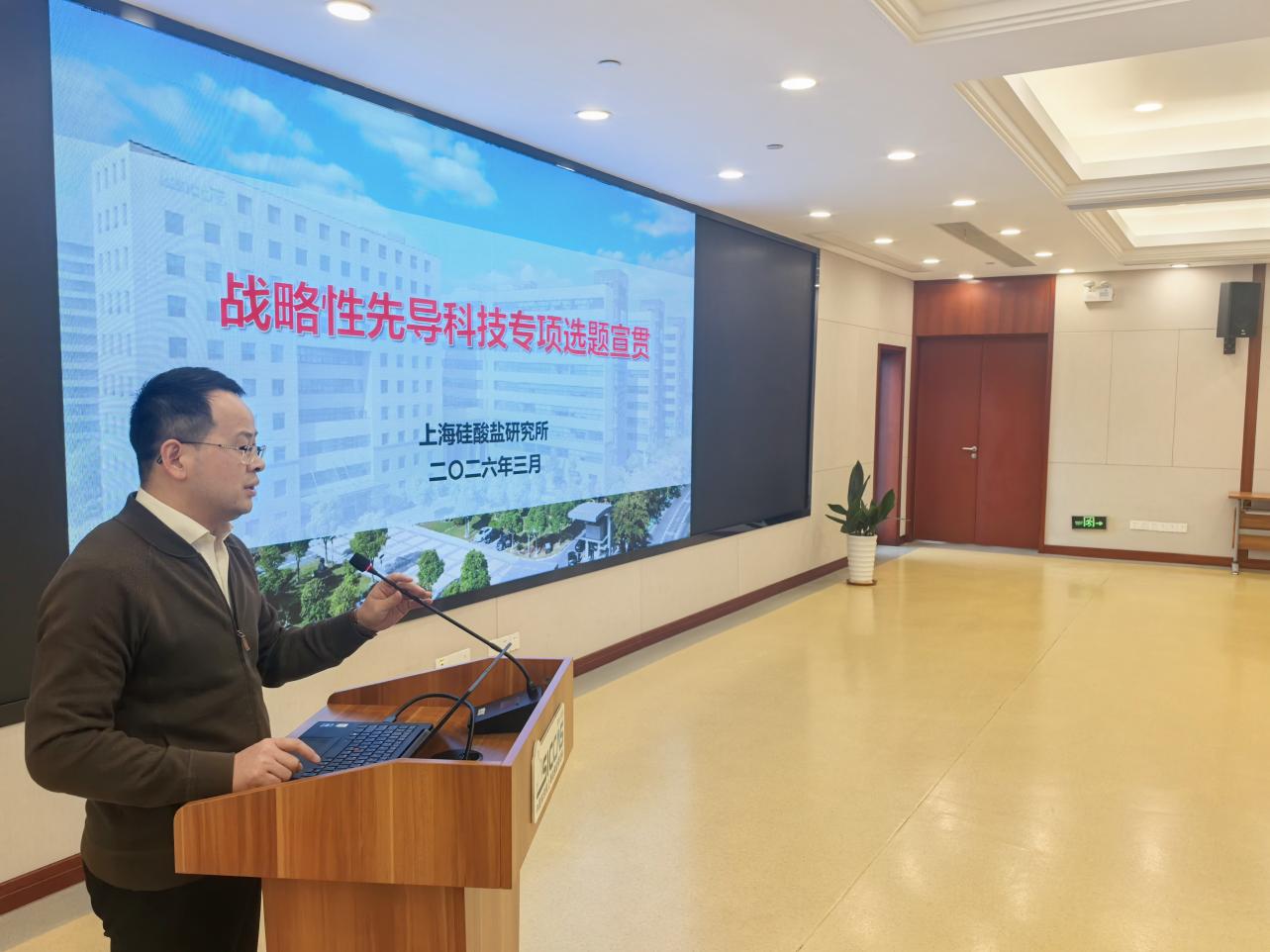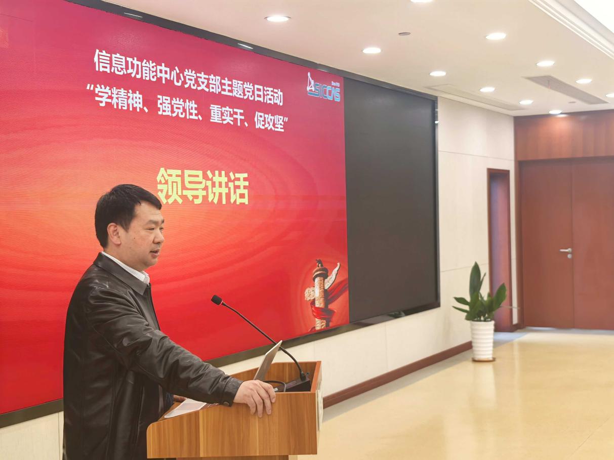 3月30日下午,中国科学院上海硅酸盐研究所信息功能材料与器件研究中心党支部开展“学精神、强党性、重实干、促攻坚”主题党日活动,深入学习贯彻习近平总书记关于树立和践行正确政绩观学习教育的重要讲话和重要指示精神、2026年全国两会精神和全国科技大会精神、中国科学院2026年度工作会议、冬季党组扩大会议精神。上海硅酸盐所党委书记王东,所务委员、科技发展部部长、发展规划处处长刘军,所务委员、信息功能中心副主任马名生,及支部全体党员和科研人员等参加活动。会议由中心党支部书记、副主任曾华荣主持。