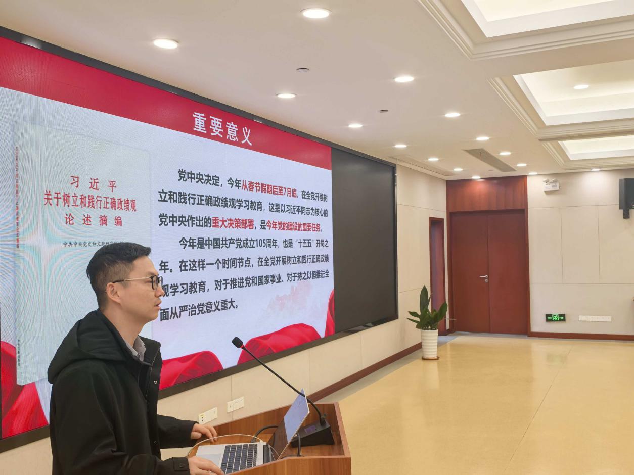 在专题学习环节,马名生领学了习近平总书记关于树立和践行正确政绩观的重要论述,中心主任王根水和中心副主任梁瑞虹分别领学了中国科学院2026年度工作会议精神和冬季党组扩大会议精神,支部宣传委员包艺拯和组织委员刘振分别领学了全国两会精神和全国科技大会精神。通过学习,全体人员深入明晰了开展树立和践行正确政绩观学习教育的重要意义,深刻领会了《习近平关于树立和践行正确政绩观论述摘编》的丰富内涵和实践要求,全面了解了全国两会精神以及全国科技大会精神的核心要义以及院党组决策部署。