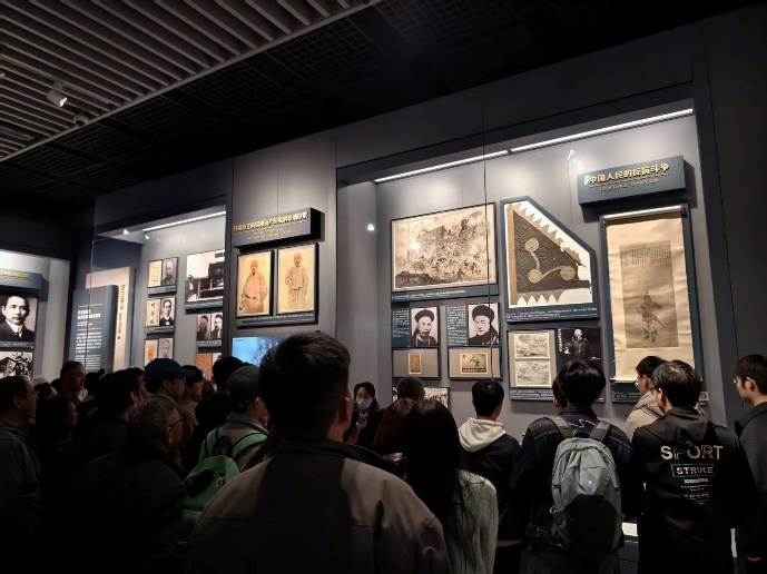 展厅内,一张张定格历史的泛黄照片、一份份弥足珍贵的文献实物、一幕幕高度还原的历史场景,生动再现了中国共产党从萌芽到诞生、从苦难到辉煌的波澜壮阔历程。大家在一件件文物前驻足凝望,深刻感悟百年前革命先驱们为民族独立和人民解放不畏艰险、上下求索的坚定信念。